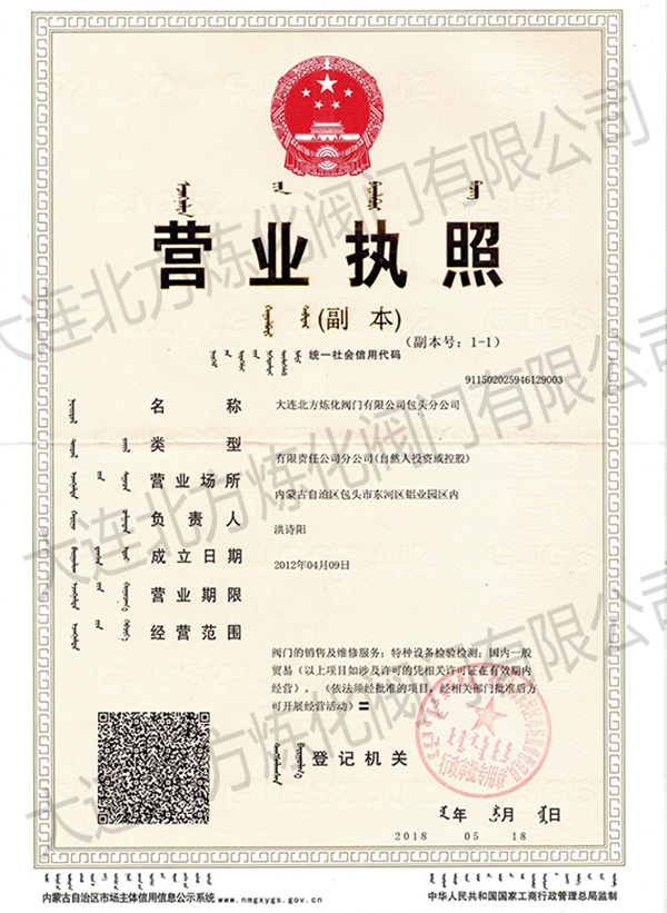 大連總公司營(yíng)業(yè)執(zhí)照