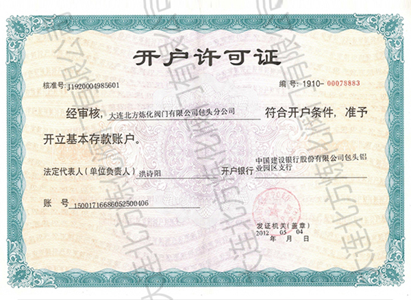 包頭分公司開戶許可證